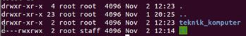 - Other, dalam hal ini User dinotasikan dalam huruf ‘o’ di terminal linux