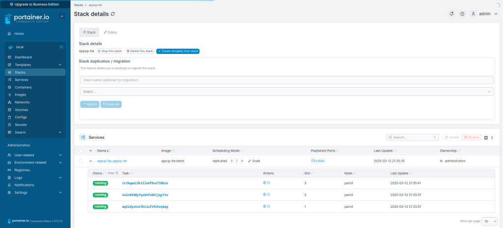Setelah image berhasil dibuat selanjutnya kita akan melakukan deployment di docker swarm menggunakan portainer. Buka kembali portainer yang telah diinstall.